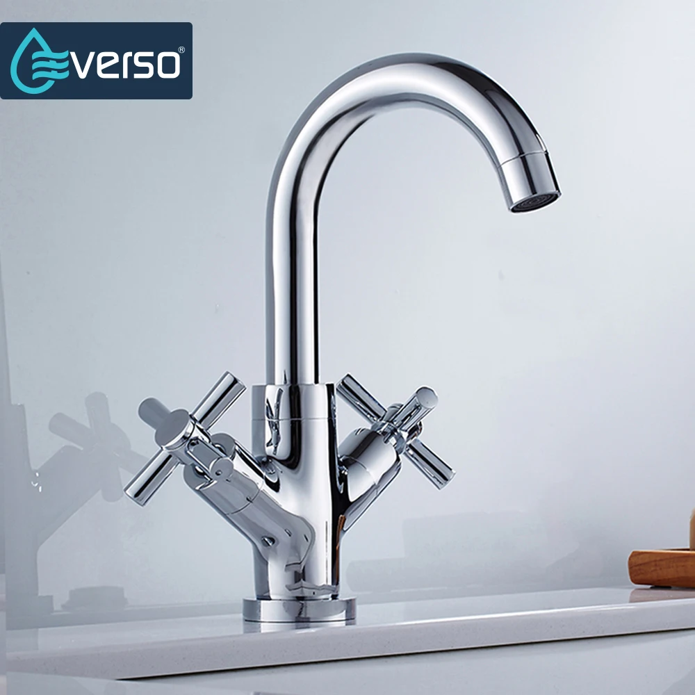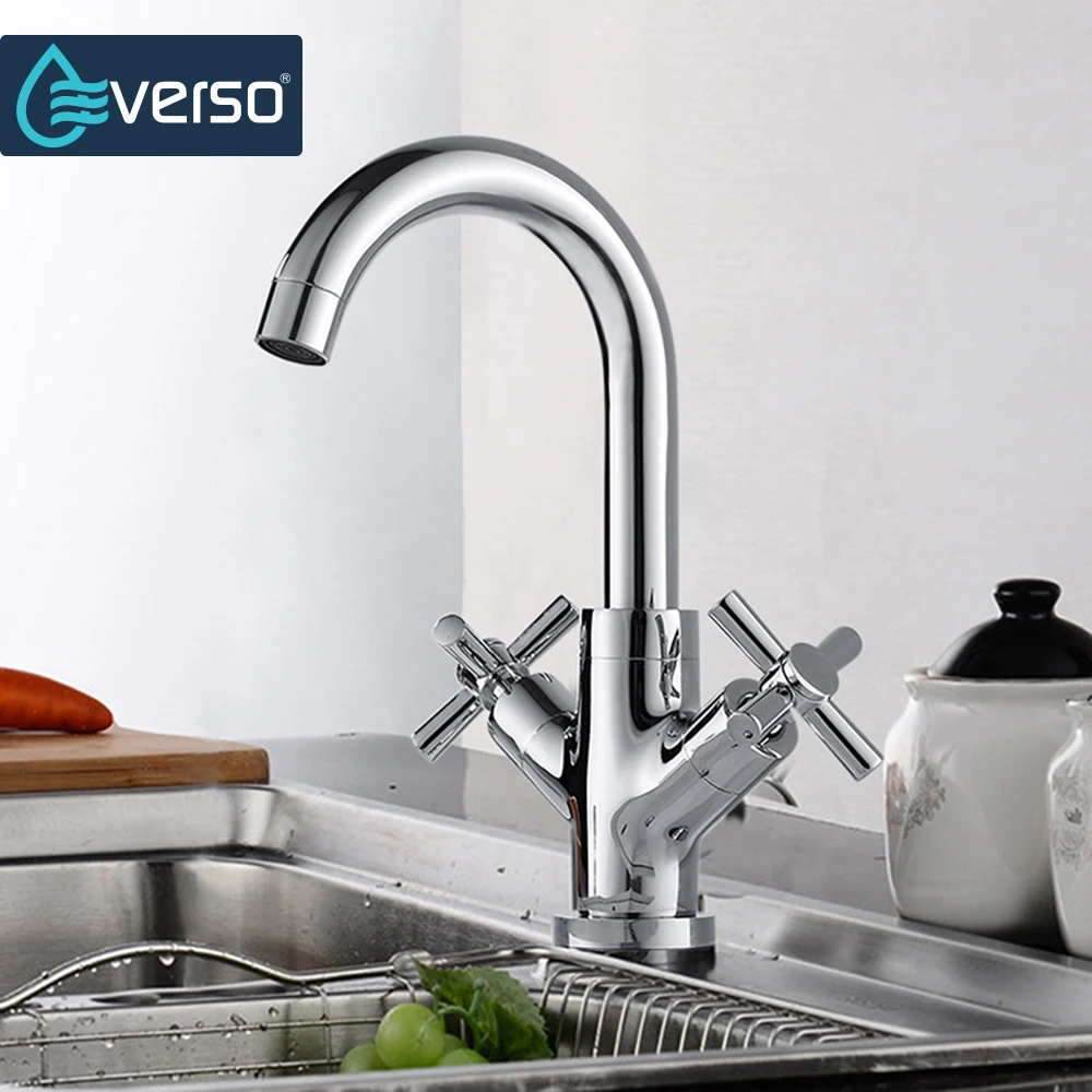 New Arrival Unique Brass Kitchen Faucet Chrome Dual Handle Single Hole Bathroom Sink Tap Save Water