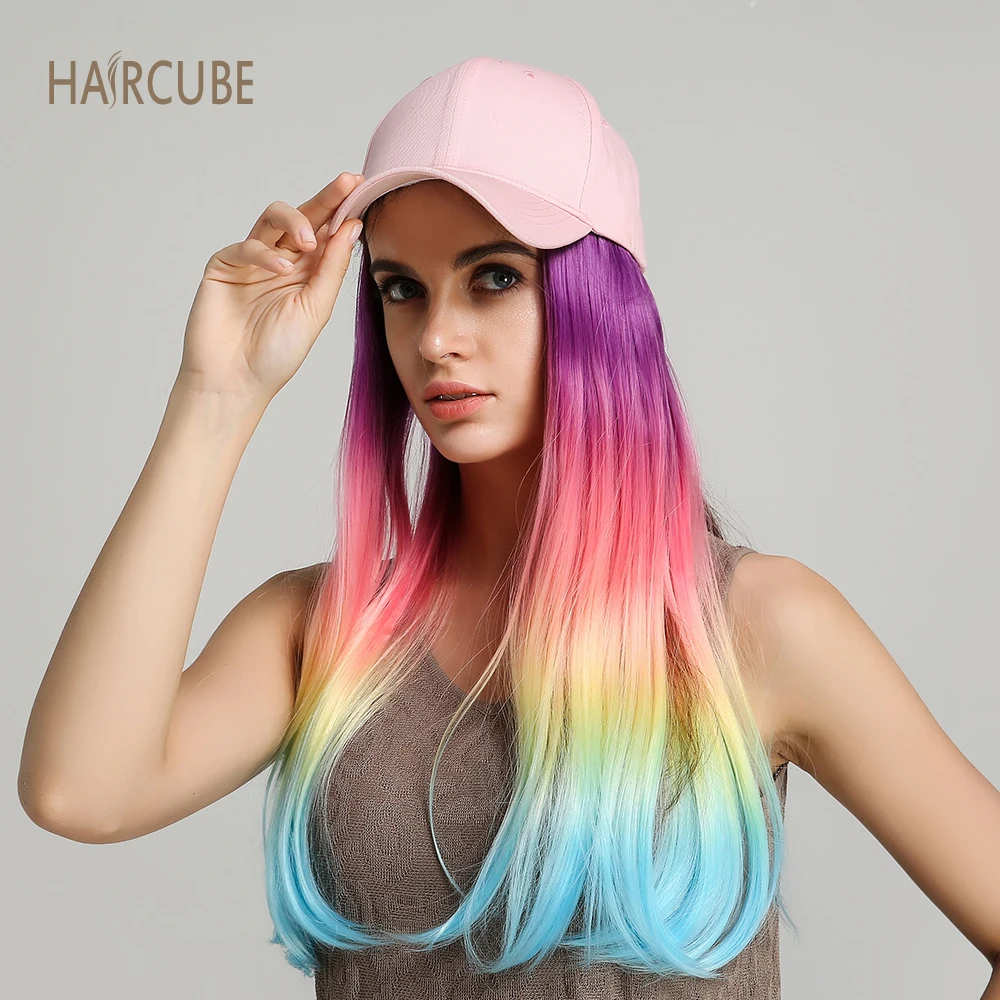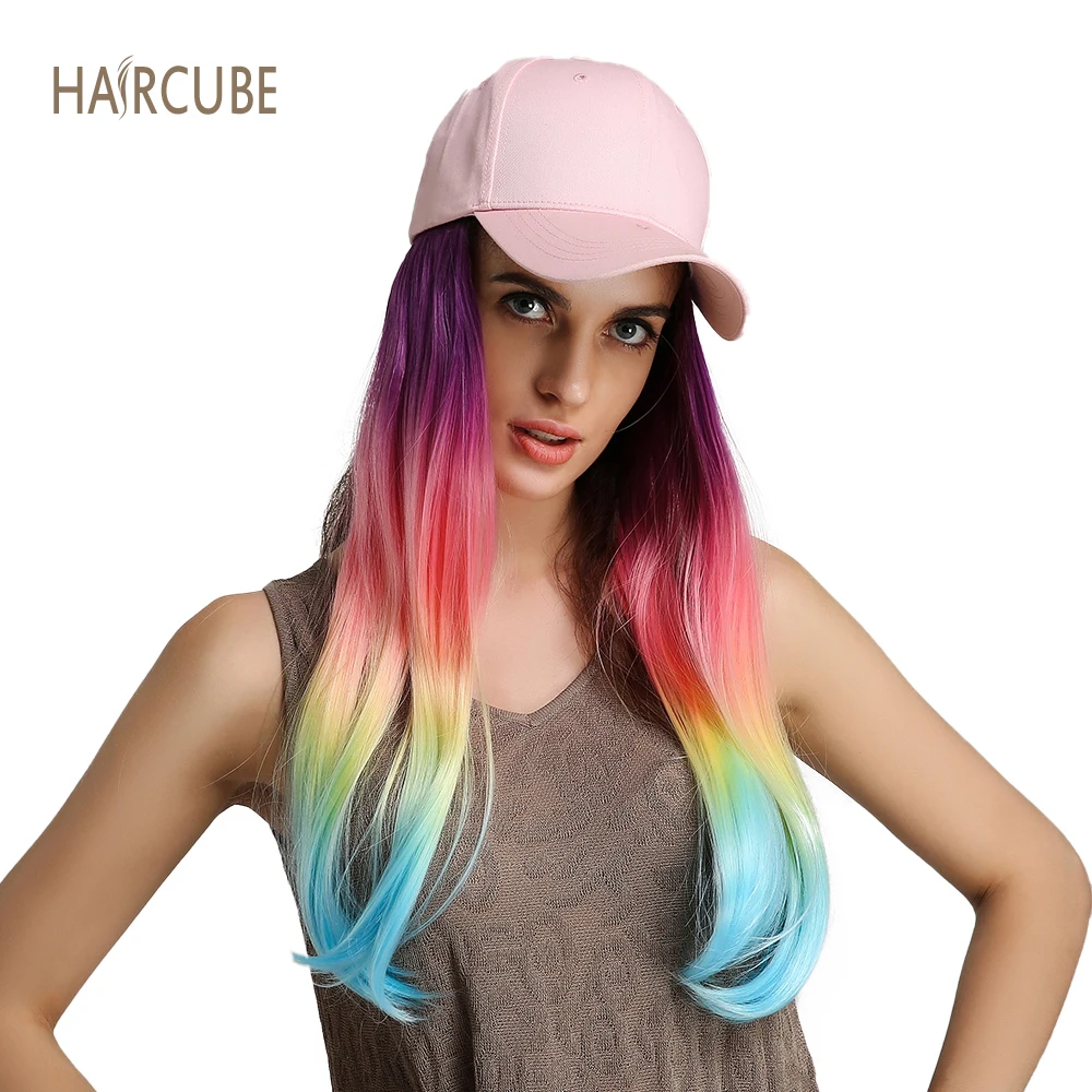 Haircube 26 Inches Synthetic Hair with Cap for Women Heat Resistant Fiber Colorful Hair Extensions