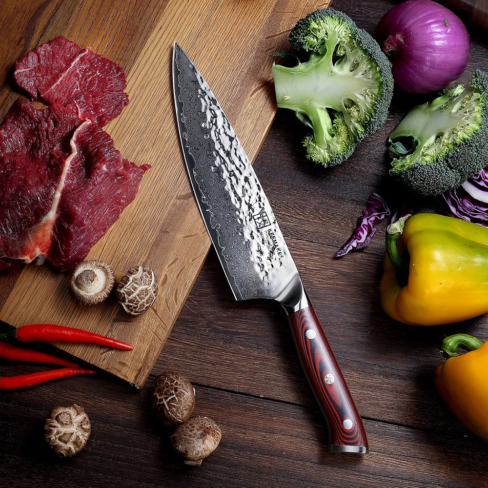 KEEMAKE 8 inch Chef Knife Hammer Damascus AUS-10 Steel Blade Chef Kitchen Knives G10 Handle Sharp M