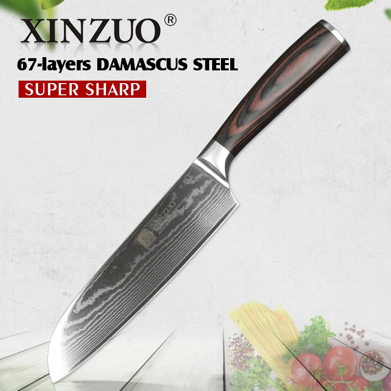 Hot Sale XINZUO 7'' Santoku Knife 67 layers High Carbon Damascus Steel Kitchen Knife New Vegetables Meat Coo
