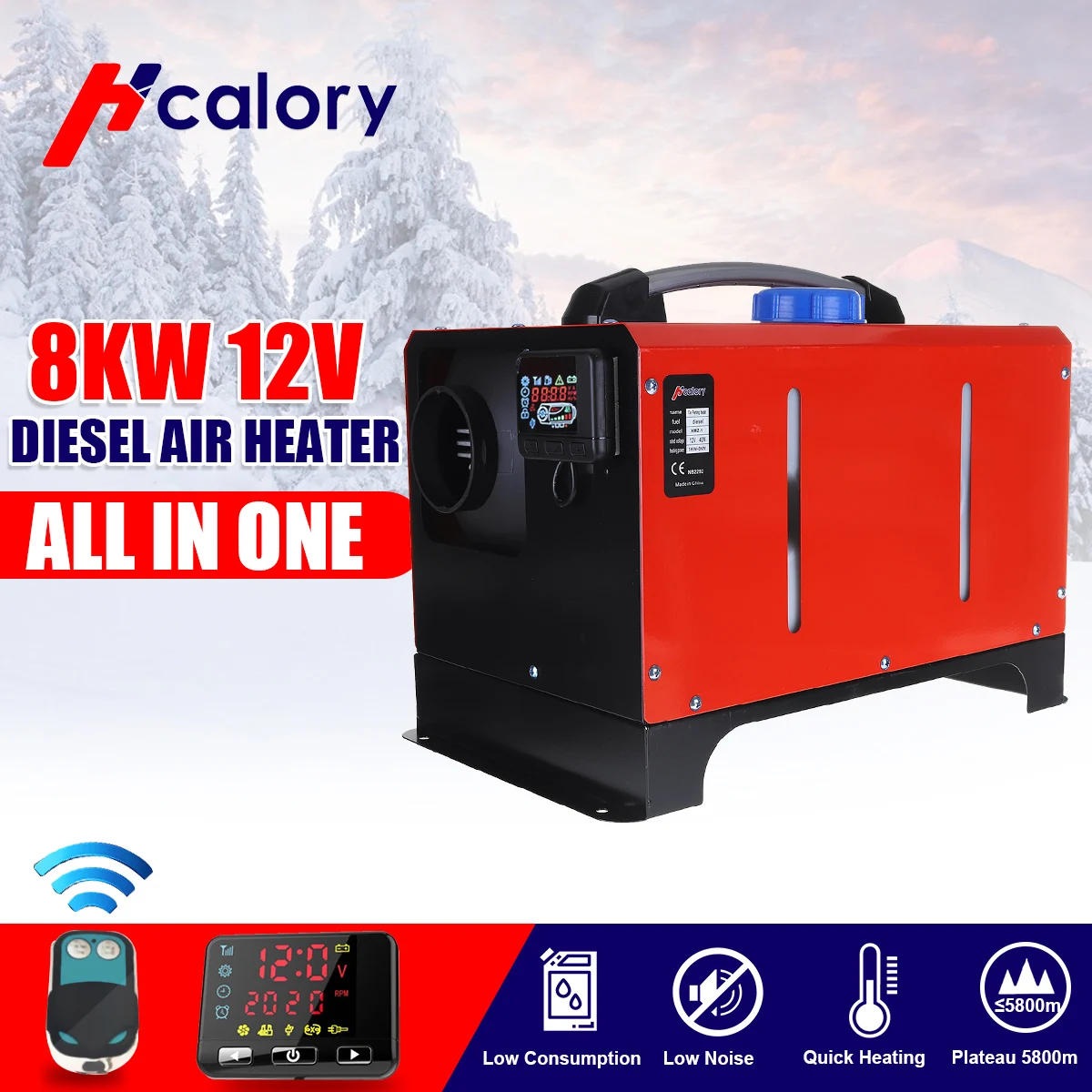 All in One Unit 1-8KW 12/24V Car Heating Tool Diesel Air Heater Single Hole LCD Monitor Parking War