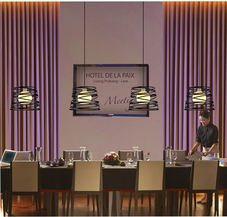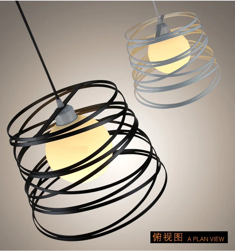 HOT Sale Simple Iron Spiral Pendant Lamp Light Shade 32cm Black / White for Kitchen Island Dining Room Resta