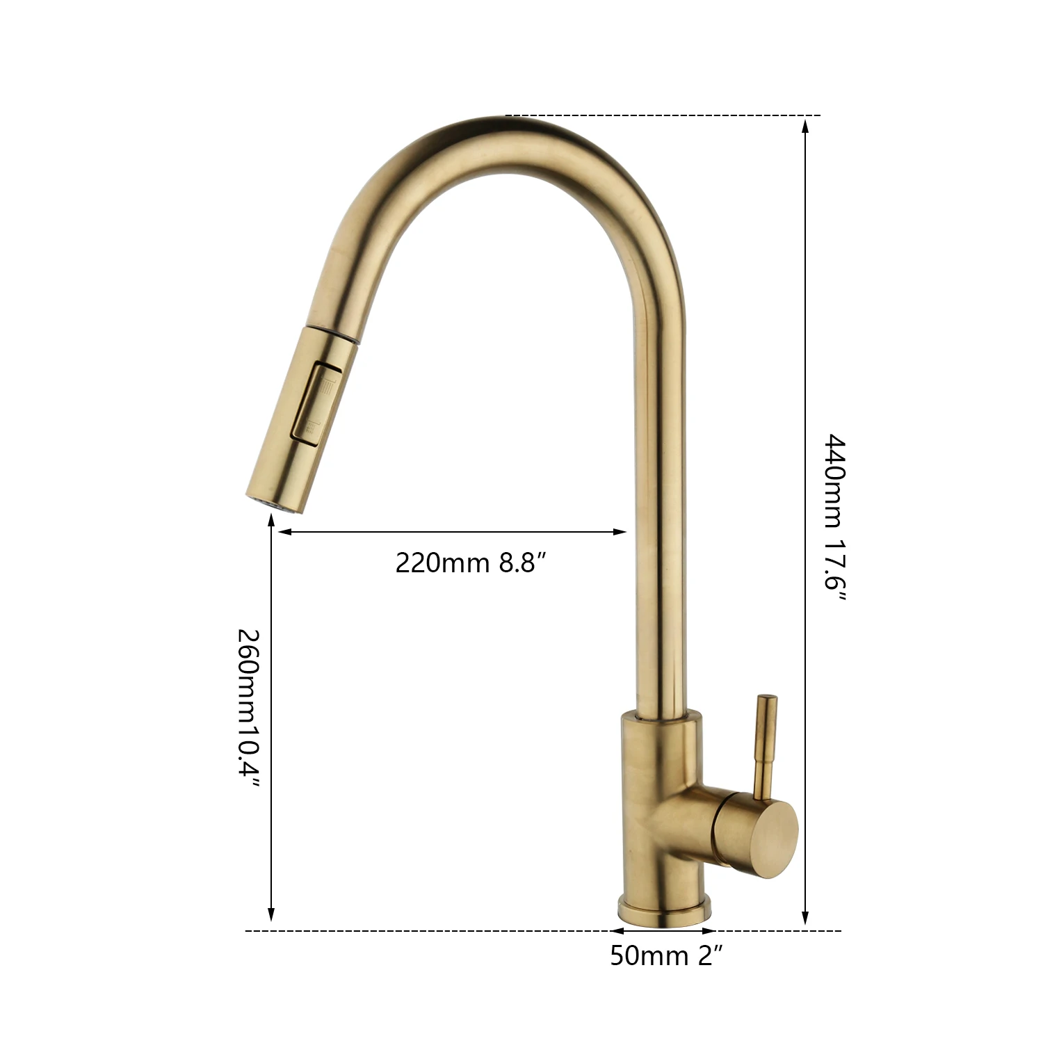 KEMAIDI Nickel Brush Golden Swivel Roated Kitchen Basin Sink Tap Pull Out Solid Faucet 360 Swivel S