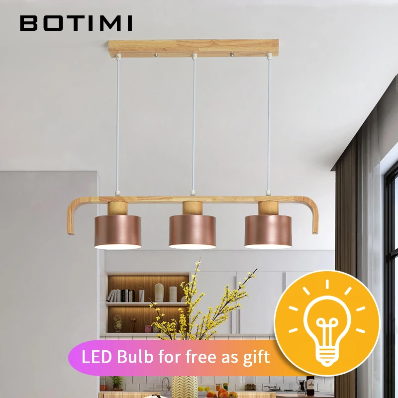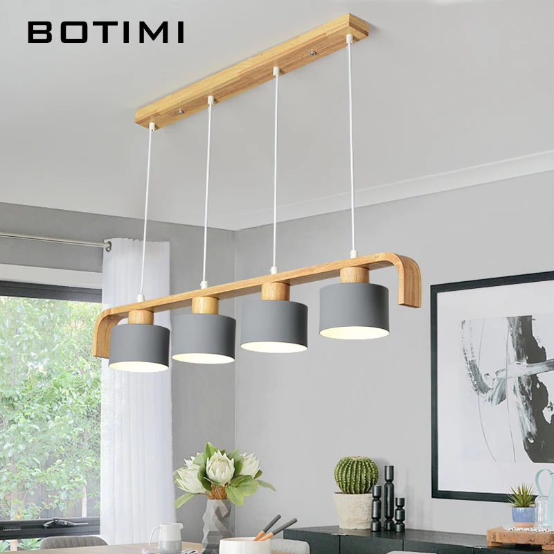 Review BOTIMI Modern LED Pendant Lights With Metal Lampshade For Dining Wooden Hanging Lamp E27 Wood Kitch