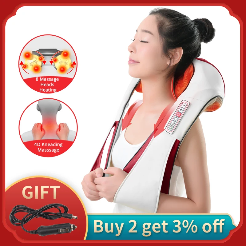 REVIEW TOP SELLER KLASVSA Electric Heating Car Home Massager For The Neck Back Cape Shiatsu Infrared Kneading Therapy