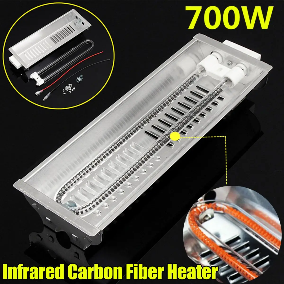 700W Far Infrared Double Carbon Fiber Heater Radiant Wave Paint Curing Heating Lamp For Baking Oven