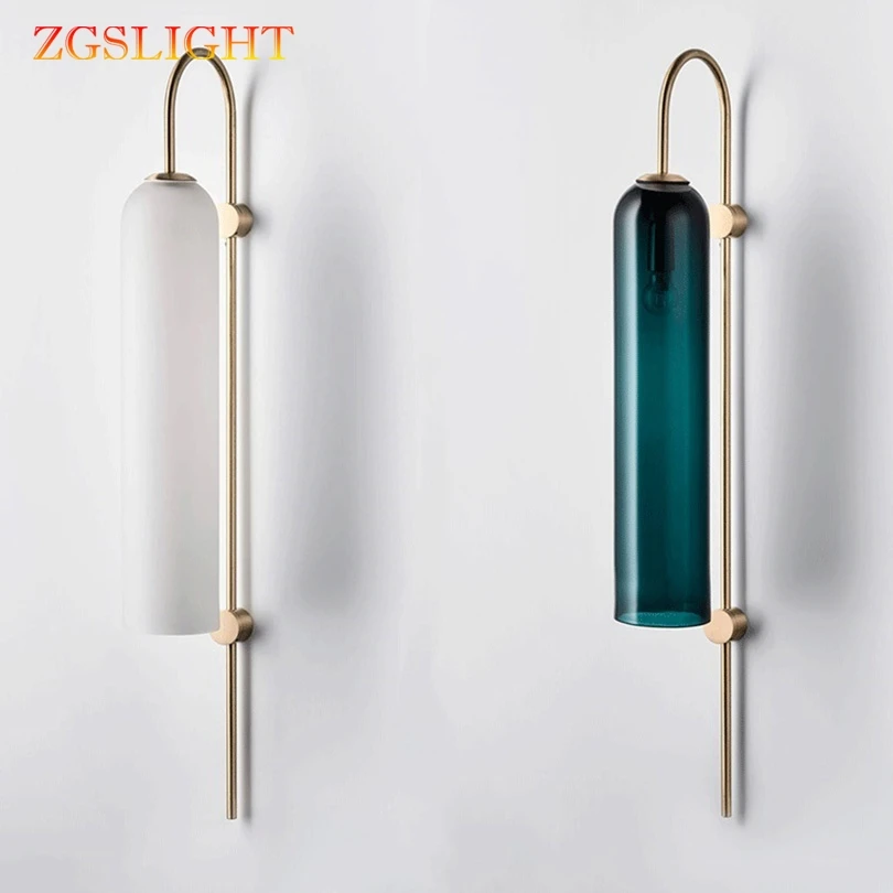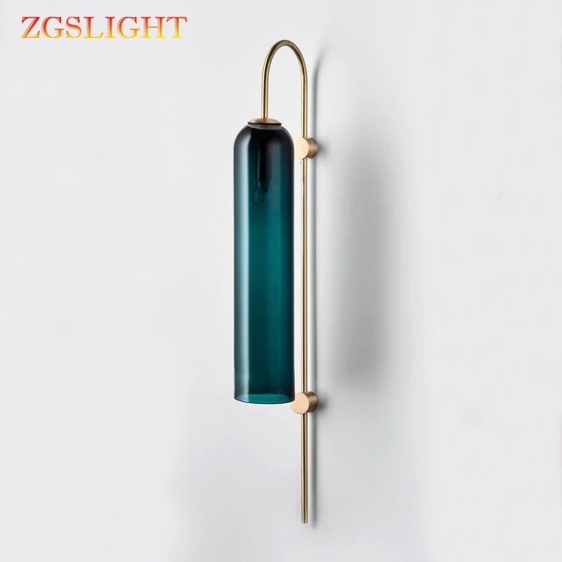 TOP Creative Blue glass Northern Europe tube Hotel prototype room Wall lamp Living room Art machine hea